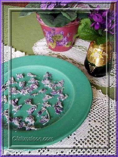 Les violettes et les fleurs comestibles cristallisées peuvent décorer vos gâteaux et desserts, elles peuvent s'offrir dans un petit bocal ou une jolie boîte à la place des dragées.