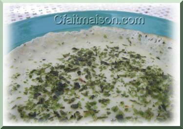 Rincez les fines herbes. Pelez l'oignon et la gousse d'ail. Mixez tous les ingrédients dans un blender. Placez au réfrigérateur avant de servir.